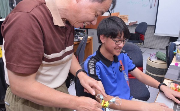 去年周延俊开始跟着松山工农资讯教师苏恒诚一起教书,在身边当个小助教,苏恒诚表示:「他或许不能算是天才,但绝对是奇才。」