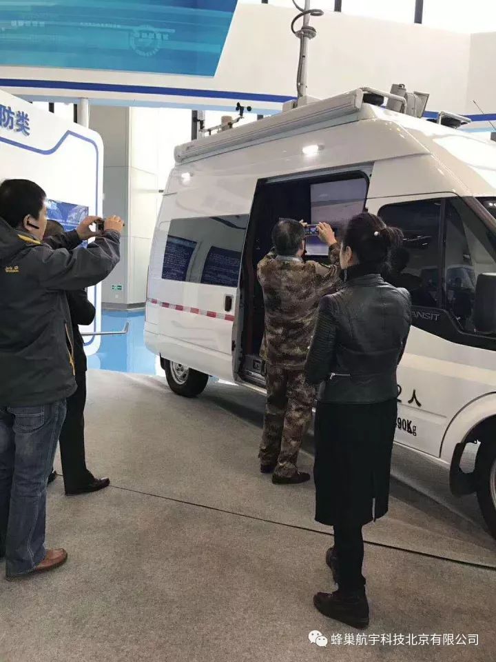 此次展览共分两个展区:宏泰展区和石飞展区。宏泰展区占地约4000平米,其中包括1600平米的无人机精品展区;石飞展区包括30000平米的室外展区和20000平米的室内展区。蜂巢航宇由于产品类目的齐全共占据了两个展位: 在石飞展区的无人机精品展区,蜂巢航宇展示了单兵侦查无人机HC-310,油电混电驱六旋翼无人机HC-330, 通用测绘手抛无人机HC-110和复合式垂直起降无人机HC-520, 受到在场领导、同行企业和到场媒体一致好评。在宏泰展区,蜂巢航宇的无人机测控车更是惊艳了全场。