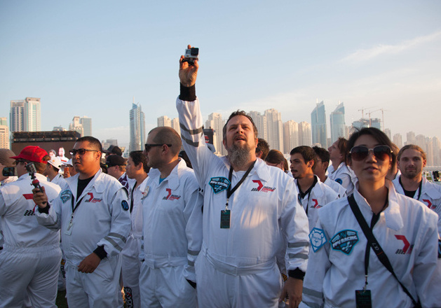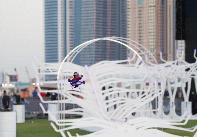在迪拜举办了无人机竞速大赛,各类无人机爱好者争先参加。图为:无人机在天空中掠过。