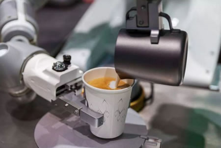 咖啡师机器人:为避免咖啡师对你侧眼相对,六轴机械臂机器人“戈登”可以为你传递做好的咖啡。它就像一台JAVA系统下的ATM机,可以帮助最少化用户的透支费。