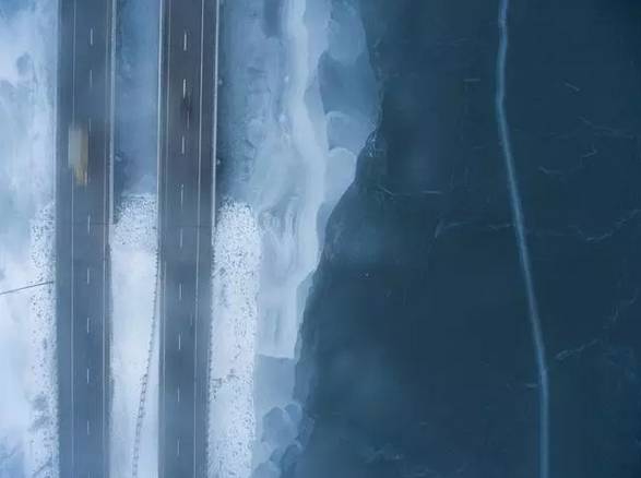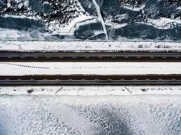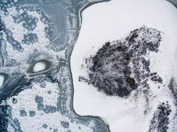 没什么比垂直于地面,将大地被大雪覆盖、银装素裹的样子尽收眼底更好的表现冬季的形式了。