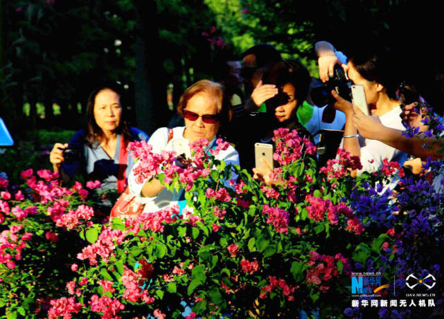 迷人的簕杜鹃,吸引市民驻足拍照。