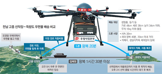 韩国邮政事业本部计划在2022年之前实现无人机快递商用化,为此将10处岛屿及山区作为无人机快递试验区,并在明年之前构建无人机管制系统,对管理人员进行职业化教育。