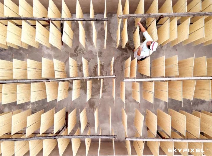 2017年10月5日,贵州省凯里市下司镇村民在忙着晾晒面条。