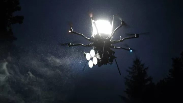 电影摄影师 Tim Sessler 说:“从技术和创意层面来讲,利用无人机搭载的灯光拍摄影片是电影取光的一种新型方式。它能创造出一种超现实般的灯光效果”。