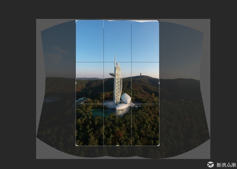 上图为Photoshop中合成的照片,下图为DJI GO4 APP合成的照片,可以看出明显范围要小很多。