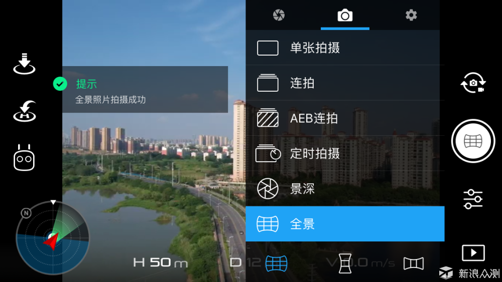 全景合成,正常情景下,无论是180度全景合成和普通全景拍摄,APP生成的照片并不大,这是为了降低spark运算负担而设置的。但是我们可以在存储卡的根目录下发现一个名为panorama的文件夹,里面会自动包含拍摄照片,180度全景是21张,普通全景是9张,竖向构图是3张。