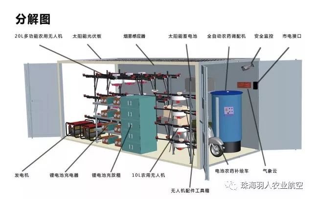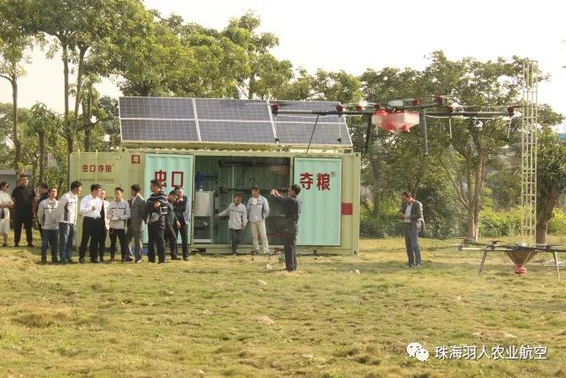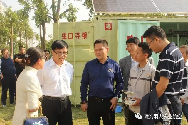 会后,各领导共同参观了“流动式共享农业无人机服务站”集装箱里装载其研发的20L大载荷多功能农用无人机、10L农用无人机、充电系统、太阳能系统、农药调配机、化肥混料机、原料仓、作业补给车、管理系统等一站式全套设备。董事长陈总向一行领导介绍珠海羽人首创流动式共享农业无人机服务站应用范围、共享模式及前景优势等。