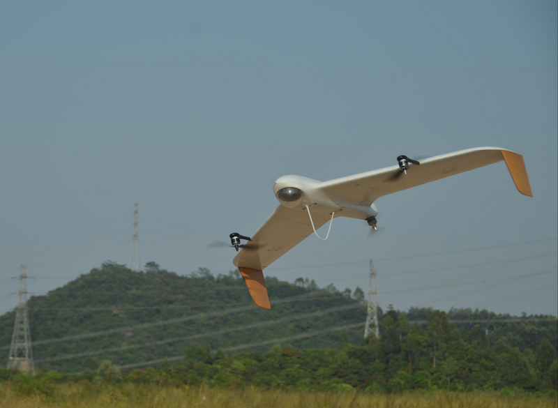 在图传业务不断扩大的同时,优鹰科技也在进行微小型垂直起降固定翼无人机完整系统的研发。据悉,优鹰科技的垂直起降固定翼飞行平台采用了少见的3旋翼矢量推力方案,其尾部的旋翼采用了难度较大的矢量推力设计。优鹰科技的3轴垂直起降固定翼飞行平台内包含了自主研发的链路一体化飞控、远距离无线高清图传系统、10倍微型光学防抖吊舱等关键模块。同时还配备了链路一体化地面测控站等关键配件。借助于优鹰科技自己的高清图传中继和双向链路中继模块,这个系统还可以扩展为可在高山阻挡环境下使用的双机中继无人机系统。