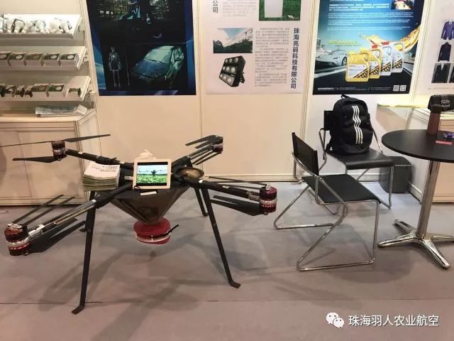 谷上飞多功能农用无人机系列是珠海羽人面向广大种植户喷洒农药需求与化肥播撒等植保作业环节开发的一款农用无人机产品。本次展示的机型是载重30L的最新款,是珠海羽人的最新科技研究成果,吸引众多参观者眼球。