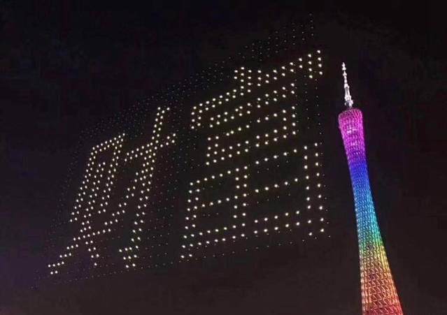 12月7日晚,在广州《财富》全球论坛城市欢迎酒会上,主办方出动了1180架无人机,编队排列变换出各种欢迎字样,造出了巨幅空中动画。