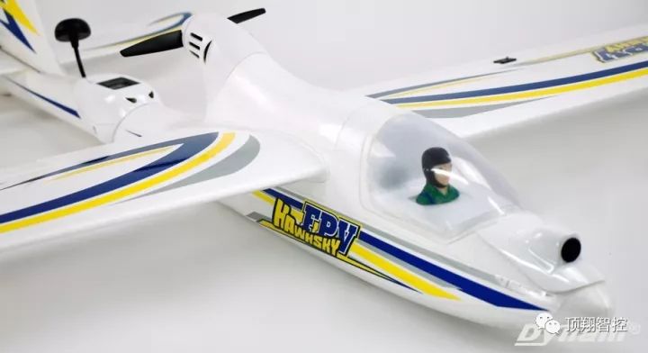 首先要提到的肯定就是机型。一般来说FPV飞机会选择低速性能优越,安定性好的飞机。正如小编手中的这款Dynam Hawksky FPV,它是在滑翔机Dynam Hawksky V2的基础上研制而成,采用的上单翼设计,翼展为1370mm,翼尖上翘,稳定性好,可于空中滑翔飞行而无需过多动力。这意味着续航时间相较来说比较长,享受的乐趣也就更多。并且平稳的飞行使得玩家可以惬意的跟随飞机第一视角欣赏风景,不会因为飞机失速导致画面颠簸严重,影响观赏效果。