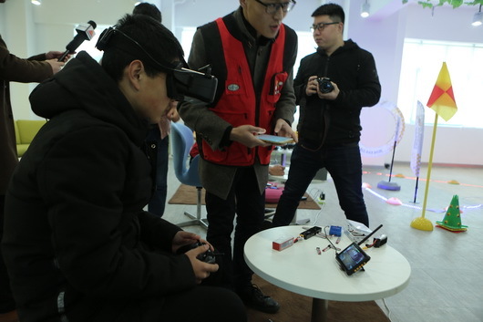 本次参赛选手都是戴着特殊的VR眼镜进行比赛的,戴上眼镜之后他们在操作过程当中可以说是以第一视角的方式进行比赛。这样的比赛方式对孩子们眼手的协调能力是一个很好的锻炼,对于下一步他们将要参加更为大型的国内国际上的无人机比赛奠定良好的基础。