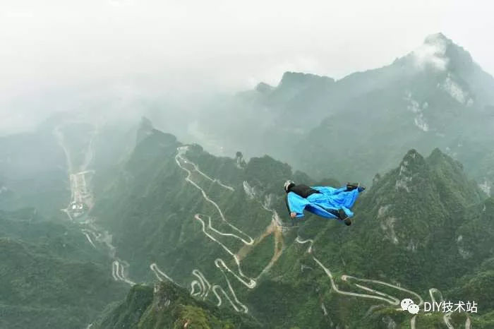 翼装飞行是一项危险系数非常高的运动,起源可追溯至上古时期,其发展至今,设计和制造上已经有了很大进步,但基本原理始终不变,即通过增加人体的迎风面积来增加升力,进而实现人在空中的无动力飞行。当然,翼装飞行还有一种是有动力飞行的,这里就不做介绍了