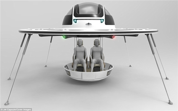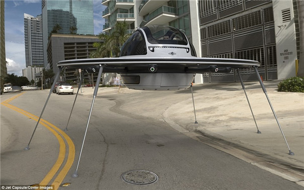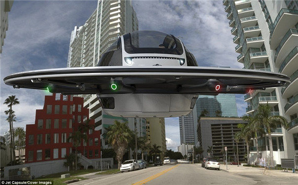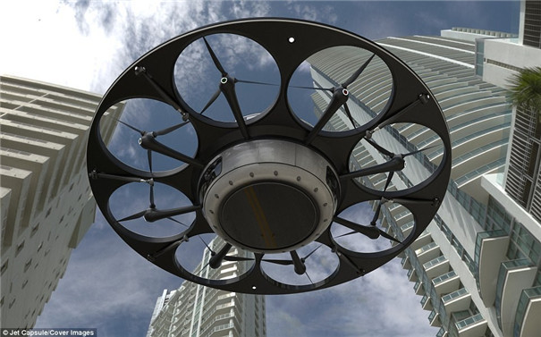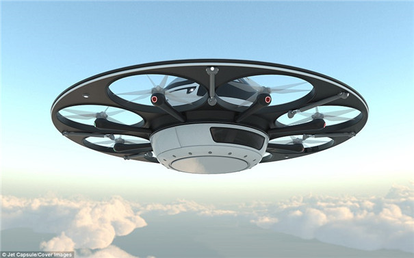多旋翼双人飞行器--I.F.O是Jet Capsule新推出的8旋翼双人飞行器,直径4.7米,高2米,采用直流电机供能,最高时速可达120mph,最长飞行时间70分钟。如果在空中遇到危险,可以向飞机一样将乘客部分弹射出来,以确保安全。