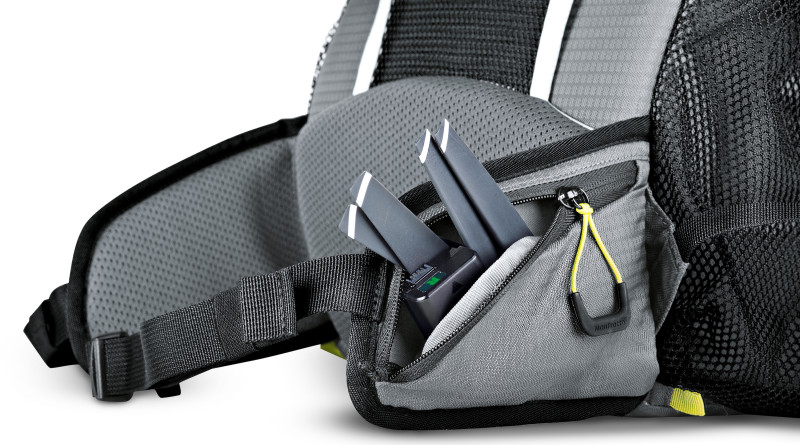 M1 航拍机腰包可放置航拍机、摇控、两组电池和螺旋桨。