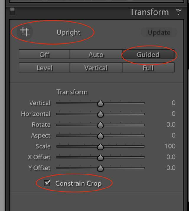 要如何修正呢?我们的做法之一就是使用Adobe Lightroom。这款软件有一个功能很少用于后期处理,但对航拍来说却是不可多得的修图神器。打开Adobe Lightroom, 找到Transform Panel(转换面板)菜单中的Guided Upright (引导式Upright) (基于其晦涩的名称,这个功能鲜为人知也不足为奇了。)参考下面的对比图,体验Adobe Lightroom修正畸变的效果。