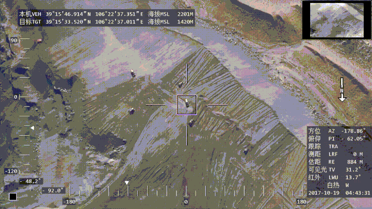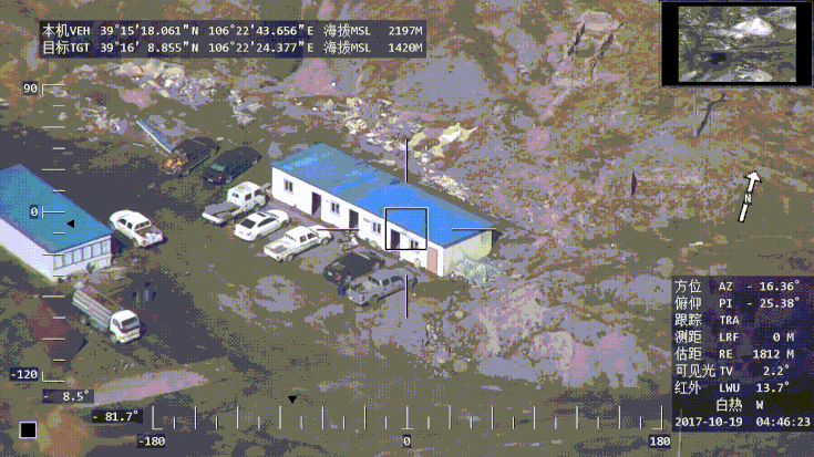 大鹏的飞控与吊舱之间相互通讯,吊舱可以从飞控中得到飞机定位信息,并根据这些信息反算可疑车辆、人物坐标,并对他们进行自动观察、跟踪。同时,将图像实时传递回控制中心,为打击违法采矿行为提供依据。