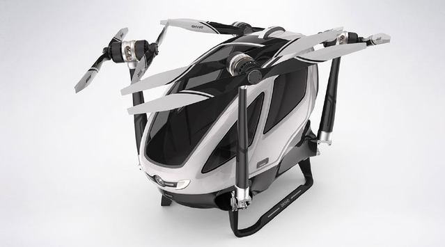 机身色调采用黑白经典搭配,主体由四轴八桨的动力系统,单人机舱和一个行李后备箱构成。巧妙的地方在于,机舱门采用跑车经典的鸥翼门设计,4个机臂可以自由折叠,减小占地空间。舱内配件尽显豪华,类F1赛车的舒适座椅,平板电脑操控台,自动恒温空调,以及4G Wi-Fi网络等应有尽有,舒适的驾驶体验显然胜过普通直升机。