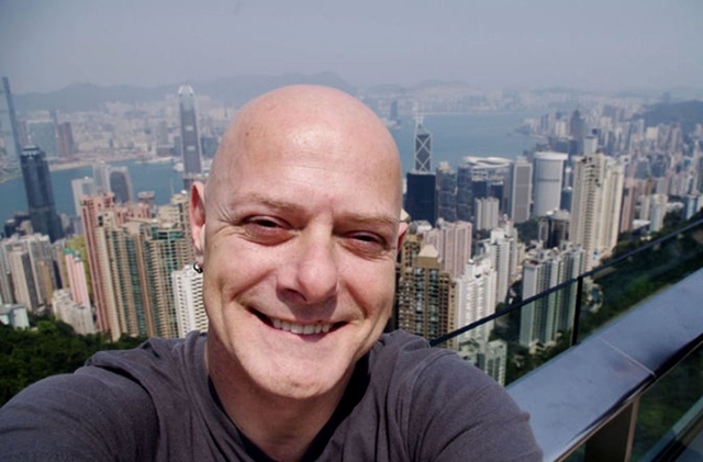 Rus Turner的自拍照。光头,耳钉,颇有朋克风采,不羁的风格。