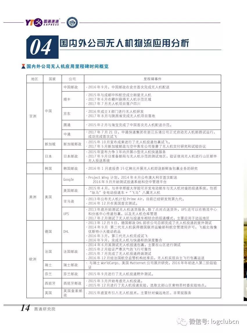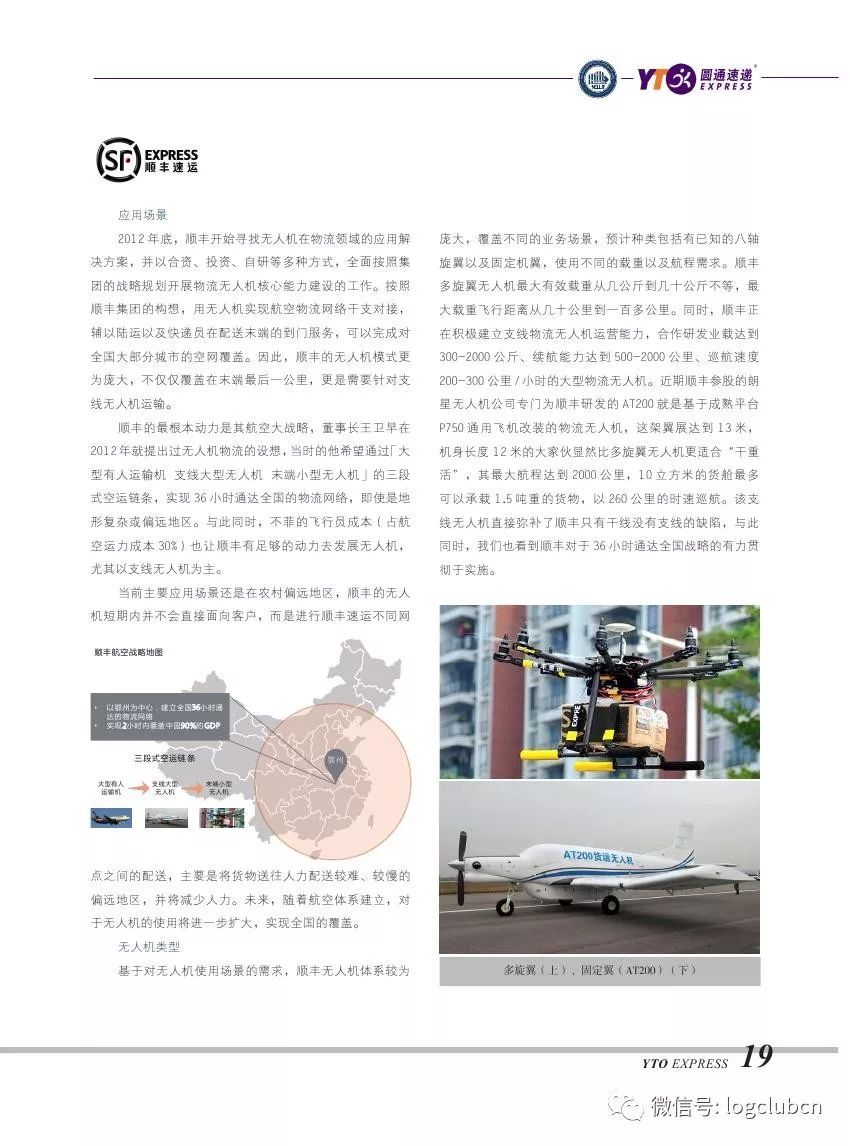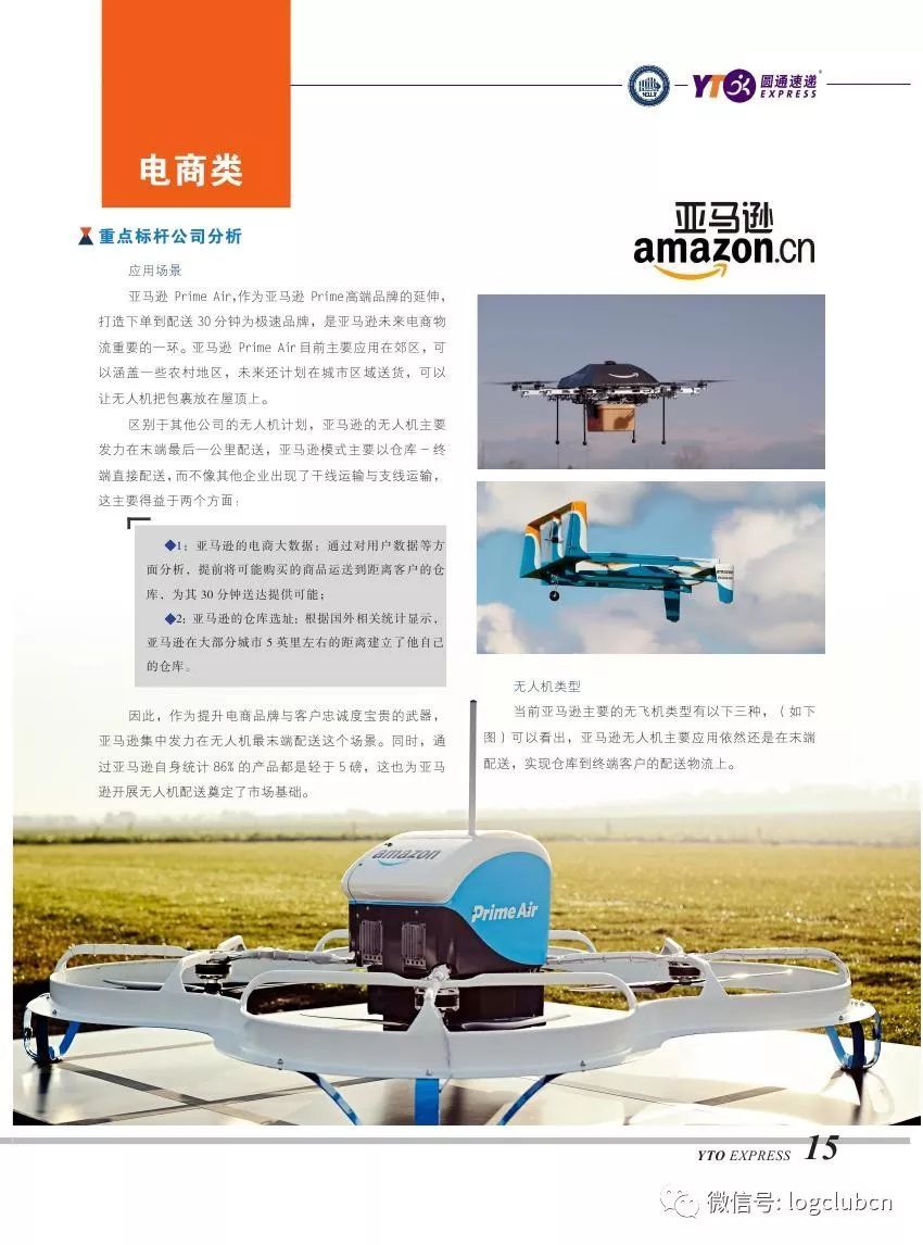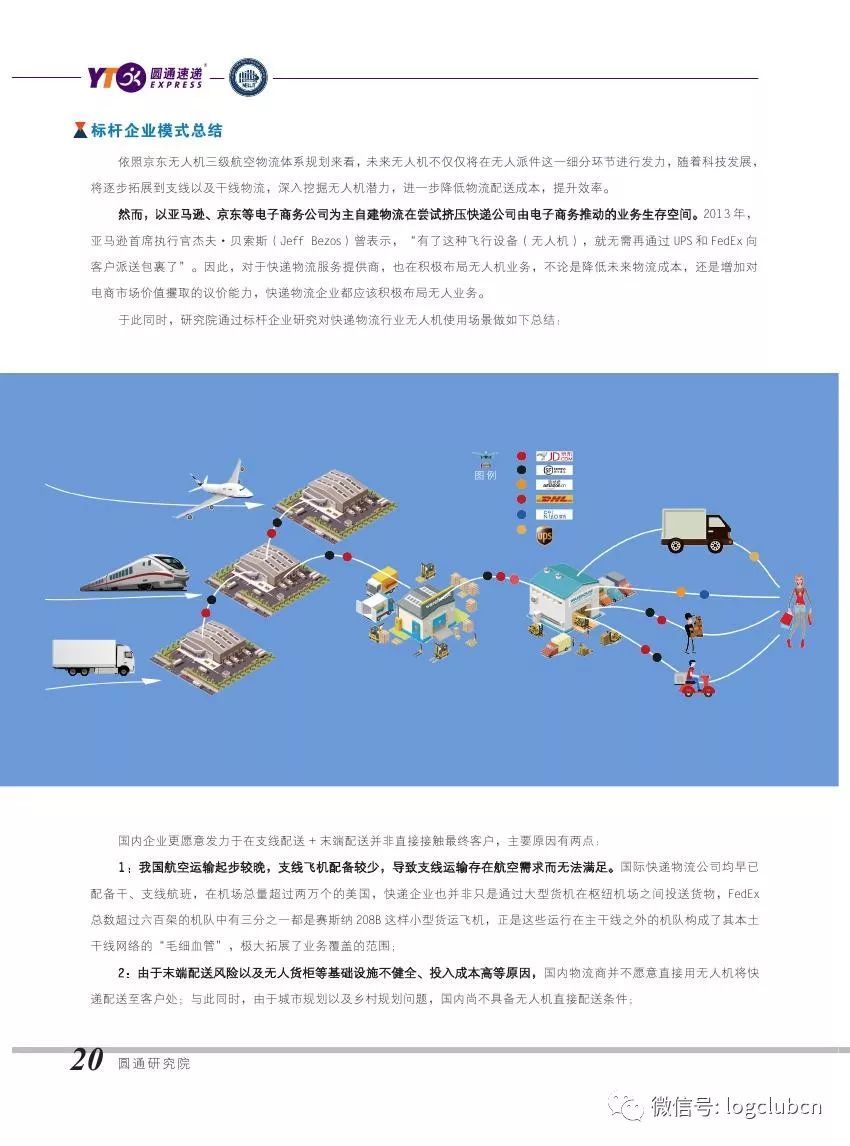 针对无人机在快递物流行业的应用,报告分析了国际亚马逊、UPS、DHL及国内阿里、京东等公司在无人机方面的发展情况,并总结出国内外公司对于无人机应用的侧重点,指出中国更重视全系统干、支、末三段全覆盖,国外优秀企业则以末端配送为主要发力点。