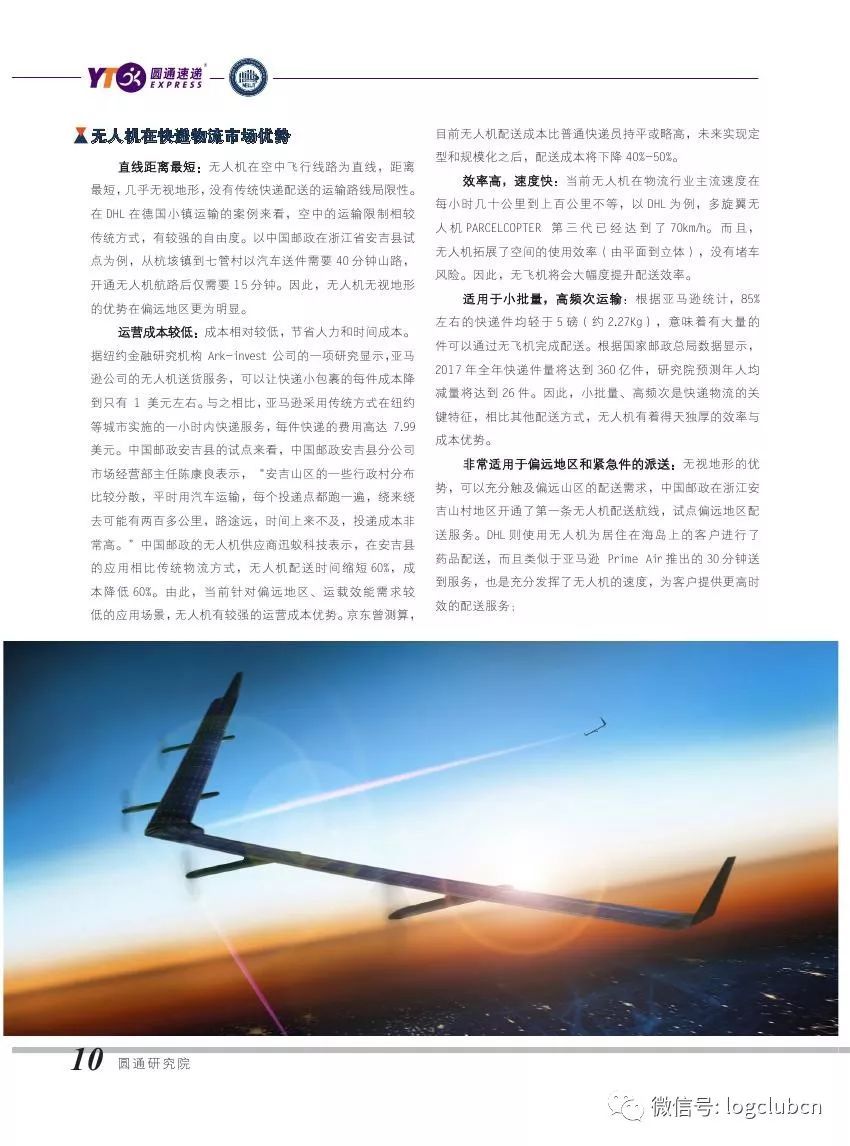 “未来物流业将进入大航空时代,打开物流运输的新战场,将是无人化、智慧化物流的关键突破口。” 近日,圆通研究院联合“国家工程实验室”发布了行业首份无人机报告《无人机现在与未来——前景解析与快递物流行业应用》,率先提出“共享无人机”将成为偏远地区最后一公里配送解决方案等观点。