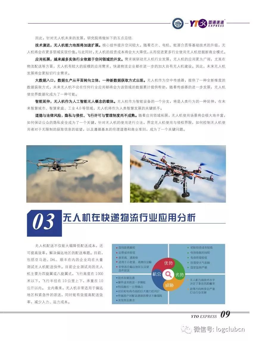 圆通研究院院长相峰表示,当前仍是快递企业发展无人机的关键时机,如何通过科技创新实现降本增效、提升竞争力、挖深“护城河”将是各大物流企业需要思考的问题,无人机也许将给物流行业带来新的方向和可能。
