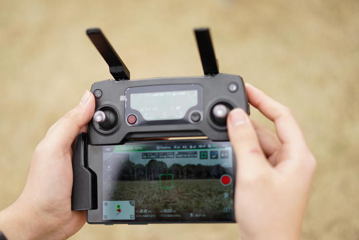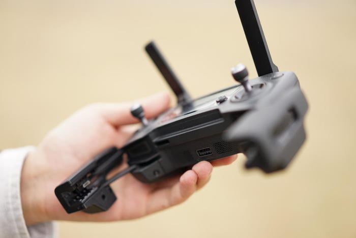 Mavic Pro 的遥控器在使用时打开底部的两个固定槽,就可以方便的将手机接入,手机上需要安装大疆的专用应用,然后就可以像玩主机游戏一样进行无人机的指挥操作了。遥控器的按键设计和功能操作逻辑与 PS4 等主机游戏的手柄非常相似,所以如果你玩过主机游戏,那么相信可以十分容易的上手。