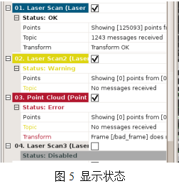 每一显示都有一个相应的状态与之对应,通过状态可以了解某一显示是否正常。状态一共有四种:OK(正常),Warning(警告),Error(错误)和Disabled(禁用)。不同的状态用不同的背景色表示(如图5),黑色为OK,黄色为Warning,红色为Error,灰色为Disabled。