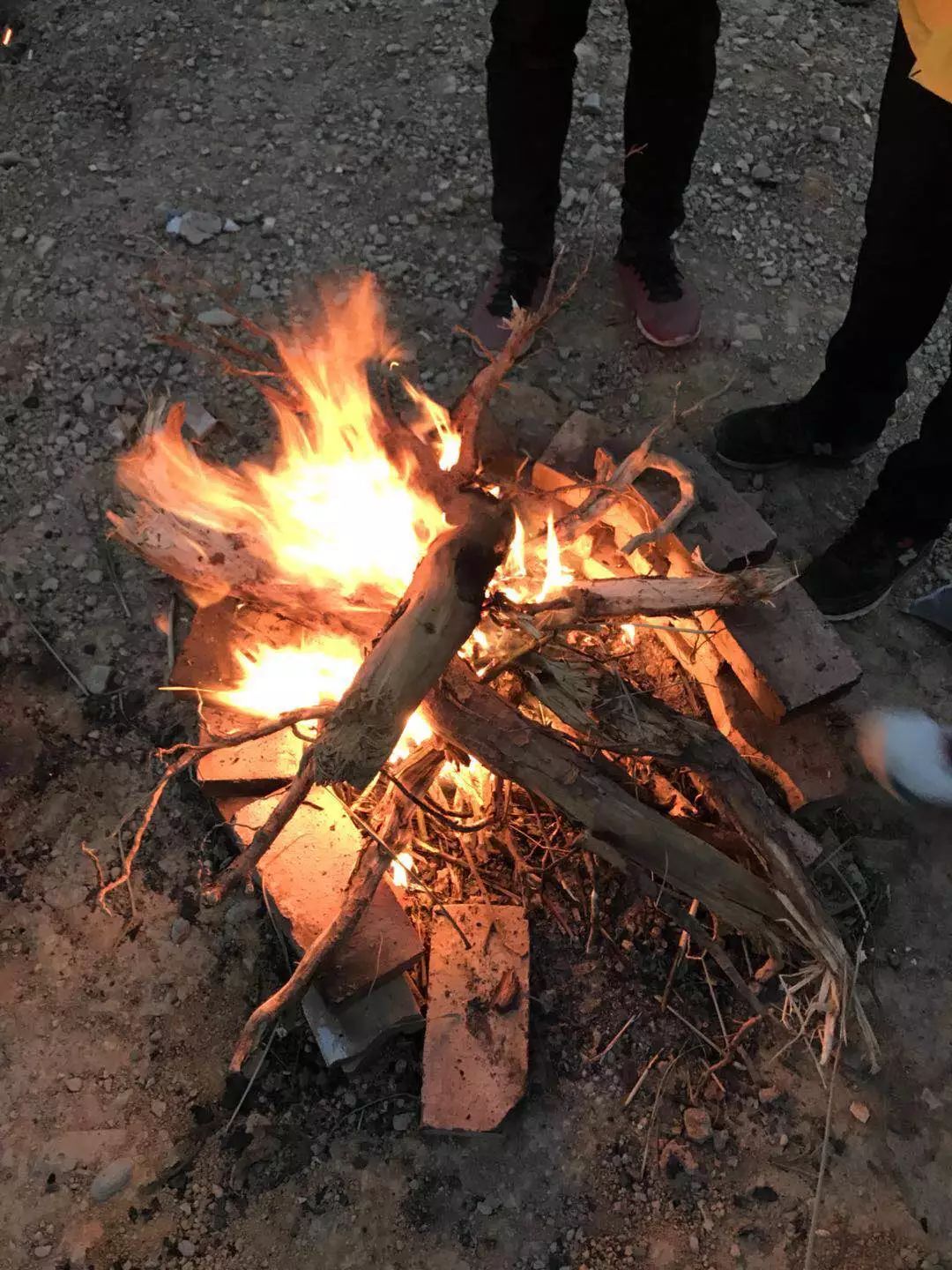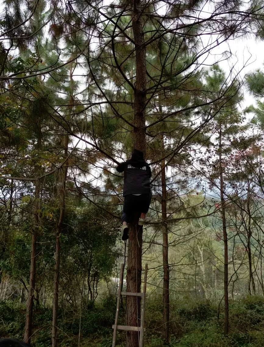 图为E在野外执行任务时,无论是爬树还是生火,都能应对自如。
