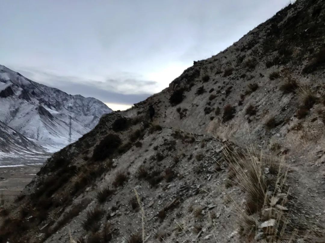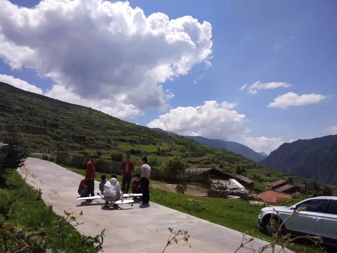 图为B曾经的一次演示飞行,在高海拔地区寻找合适的飞行区域时,已经没有适合人行走的山路时,依然抱着“车到山前必有路,柳暗花明又一村”的心态翻山越岭。
