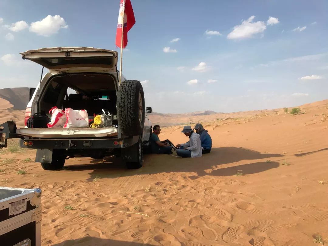 图为A在沙漠地区进行飞行时,在地面温度已经达到了50度的连续曝晒下,为达到用户需求依然坚持不懈的调试飞机到最佳状态。