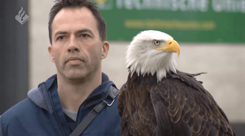 荷兰警方训练老鹰擒下乱飞的无人机。