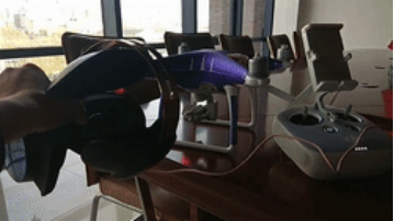 试飞也非常成功,当天风力较大,无人机姿态稳定,图传信号清晰流畅,头带VR一体机的飞手测试后已经无法自拔,相比传统航拍监视器使用的是手机或者平板,VR的沉浸感更好,可以更专注,屏幕不会反光,且减少了控制相机的操作,飞手可以专心操控无人机,几乎实现了喝大疆飞行眼镜一样的功能。