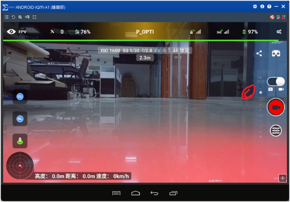 OK了,大功告成,成功用奇遇VR眼镜和大疆无人机连接,并且正常试用奇遇VR一体眼镜,4K的分辨率果然不一样,比大疆眼镜效果还要好,下面看到的是飞行信息,大家上下动一动眼镜,飞机云台也跟着一起转动。
