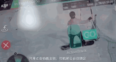 当你确定好拍摄主体,可以选择“智能跟随* ”拍摄。只需要点击拍摄主体,相机就会自动锁定拍摄主体。需要注意的是:在山地使用智能跟随时,随着拍摄主体沿坡度下降,飞行器与人的距离将迅速拉开。所以最好从低处开始拍摄,还要在画面中人物变太小之前,结束拍摄。