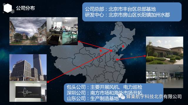 公司总部坐落于北京市丰台区诺德中心,承接全球各地相关业务,并精研于行业应用场景,为用户提供无人机相关一体化解决方案。在河南省安阳市设立了安阳蜂巢智能,专注于无人机极限条件下的各项测试,提高、强化无人机的各项性能。在天津设立天津航宇智能,专注于无人机的研发和生产,为蜂巢航宇无人机提供强大的技术支撑。