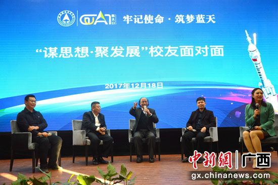 当天,广西首家无人机学院正式落户该校。政府、有关企业、高校及校友代表共聚一堂,为学校推进“二次创业”献计献策。中国航天科工集团公司、中国航天科技集团公司、航天基金会等单位嘉宾为30名荣获“航天奖学金”的学生颁发了30万元奖金。