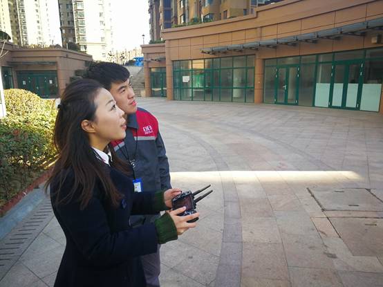 试飞的时刻来了,刘女士开始还有点胆怯,默默后退半步,服务人员nice地解释了GDU O2的基本飞行操作和注意事项,精准的飞控技术保证了飞机稳定的悬停及飞行,所以安全系数大大提高。