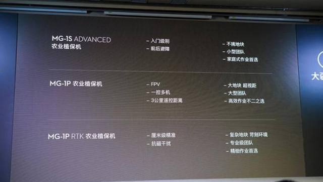 首先一提的是,这些植保机款款都是天价,MG-1SAdvanced售价29999元,MG-1P售价36999元,MG-1P RTK售45999,这些无人机不同的价格和型号都是针对不同的农业作业团队以及应用地形等场景而生。
