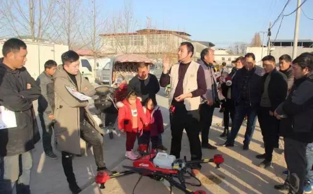 图为12月20日下午,在王孟镇王孟西村无人机演示现场,河南省兴航航空工业有限公司,临颍县兴航植保无人机的技术人员,在演示现场合影留念。