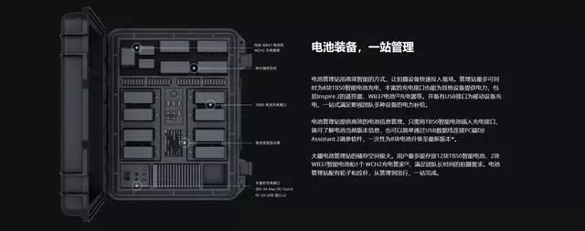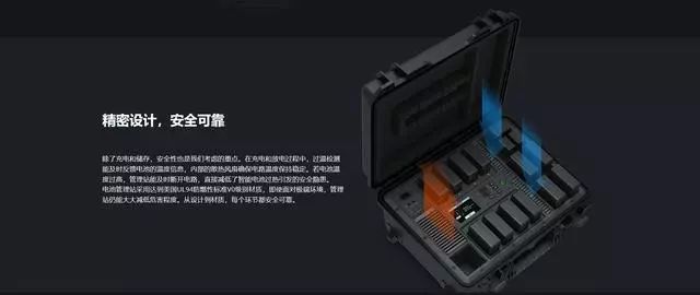 同时大疆电池管理站还内置的冷却风扇,这将有助于散热,而且充电和过热检测监视器提供了额外的安全保障。