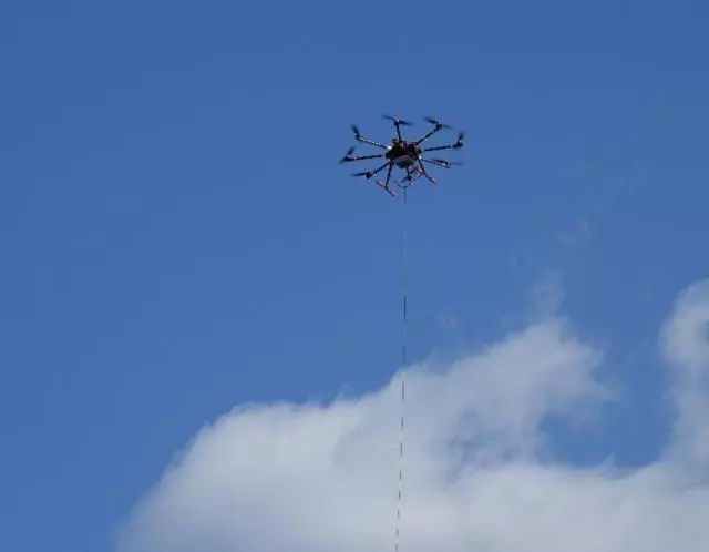 系留无人机是将无人机、系留综合缆绳和光电吊舱等任务载荷结合起来的无人机系统,可以实现不限时的空中飞行悬停,实现24小时甚至更长时间的连续的、高效的空中侦查、监视、应急通信等任务,曾作为“移动哨所”服役军方。目前广泛运用于军事、公安、消防、应急救援、石油、海洋、通信、交通、科研等多个领域。