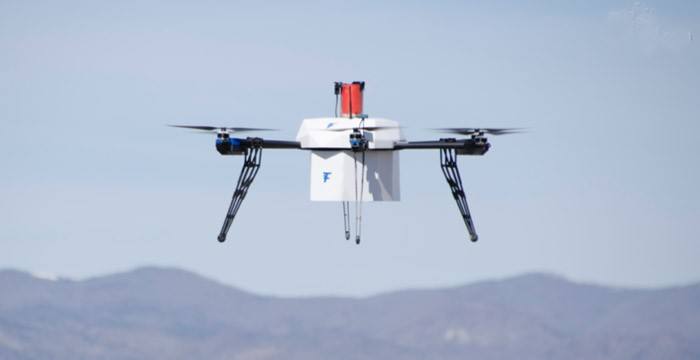 工作原理:无人机可实现鞋盒包装以下大小货物的配送,只需将收件人的GPS地址录入系统,无人机即可起飞前往。