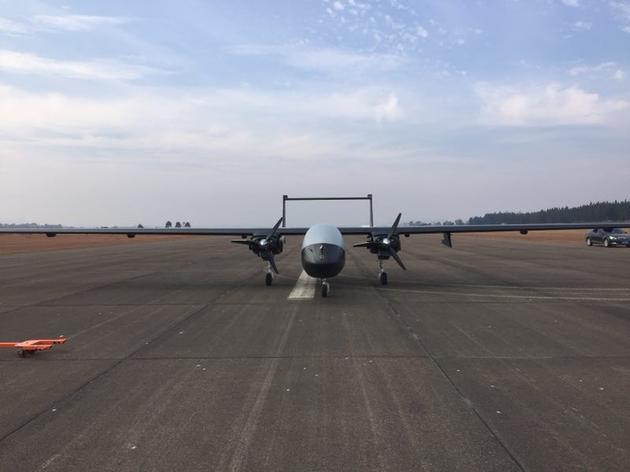 本次演示中使用的大型物流无人机翼展20米,机身长10米,起飞重量约3吨,载重1.2吨,是目前全球大型的物流无人机之一。巡航速度可达250千米/小时,航程可达3000千米,升限6000米。