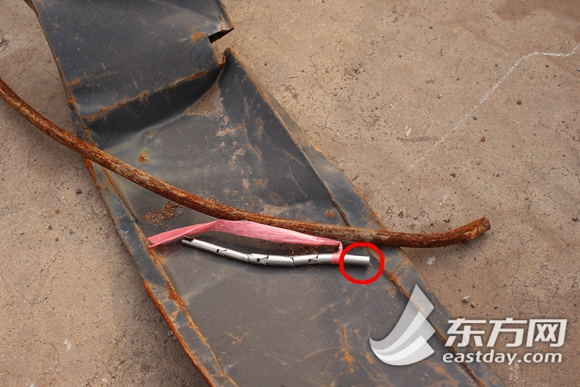 图片说明:红绳系的前面部分是模拟的失控放射源,如烟头般大小