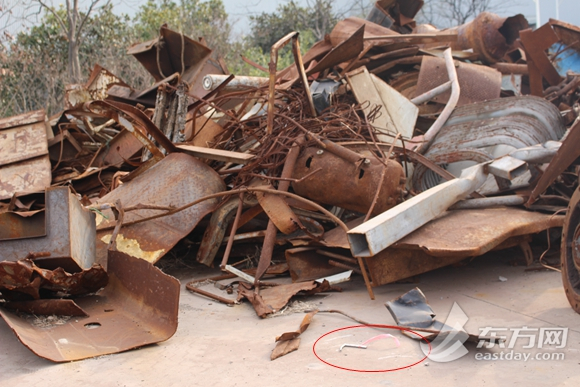 图片说明:模拟失控放射源在一堆废铁旁并不显眼