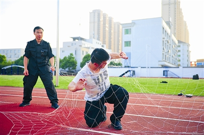 但是,网枪搭载到了无人机上,“准头”就非常难掌握。经常一枪射出去,网了一个空。为了找准网枪最佳射击距离,台州的这些民警开始“疯狂”尝试——他们找了一位民警扮“嫌疑人”来回跑动,另一位民警则操控无人机,尝试各种角度去网“嫌疑人”。