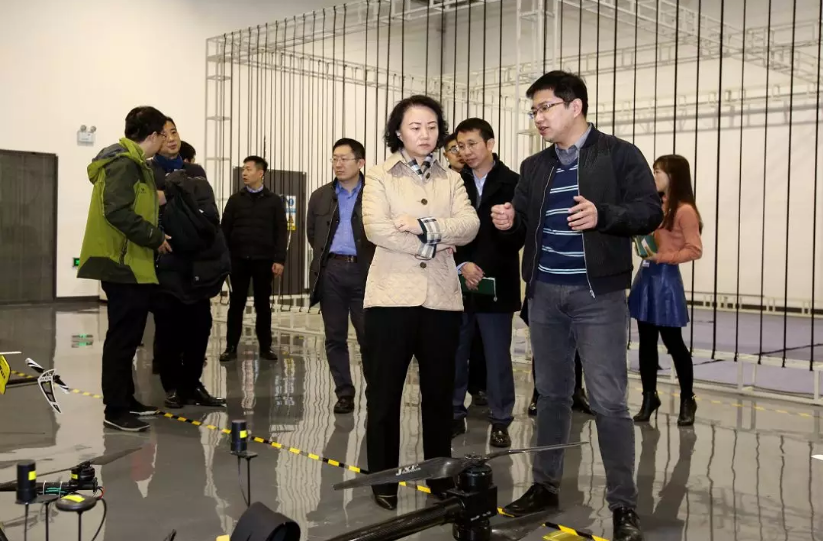 一飞董事长兼CEO齐俊桐带领各位领导先后参观了企业荣誉展厅、无人机云平台控制中心、前沿科技实验场等办公区域,并就当前无人机行业发展态势及一飞未来发展规划进行了全面汇报。