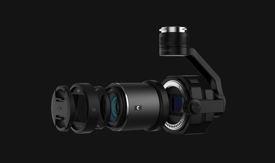更为重要的是,此次大疆为禅思 X7 云台相机开发了全新的 DL 卡口与镜头群,其卡口口径达到了 58mm,法兰距却只有 16.84mm。这意味着,其拥有了配置更大画幅以及足够强大的转接能力。
